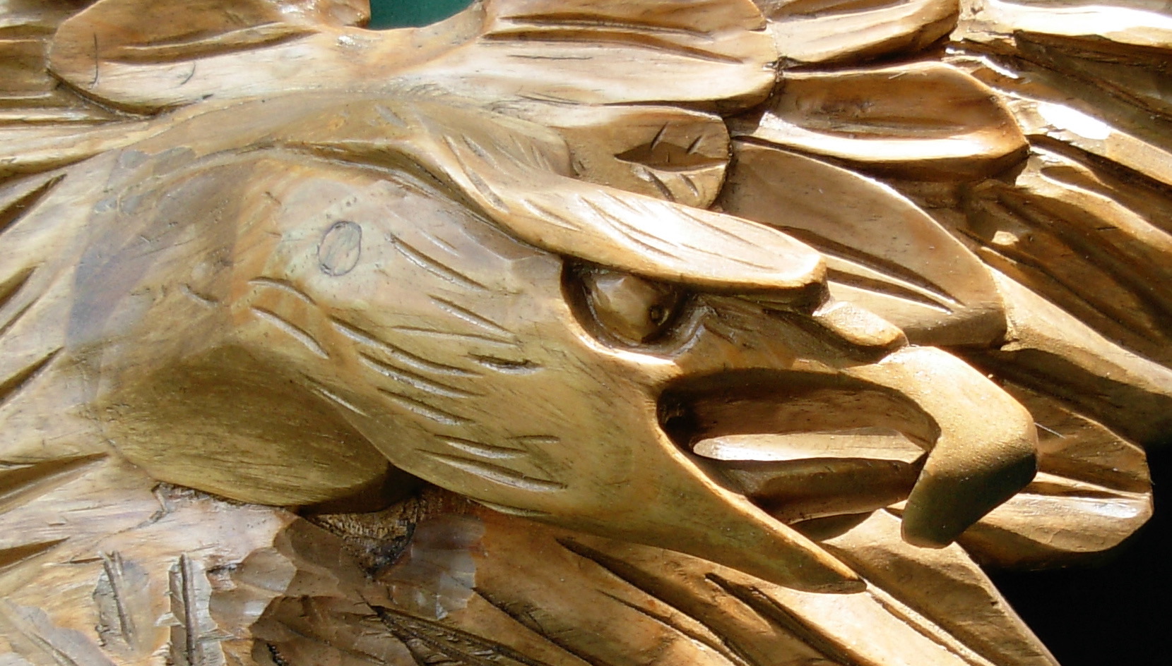 The detail from this eagle head reveals the wooden plug that conceals the screw that is used to attach the head to the body. It is rough carved and then “faired” to the profile and plan of the body. After painting or gilding you can’t tell that the head is an attached piece.