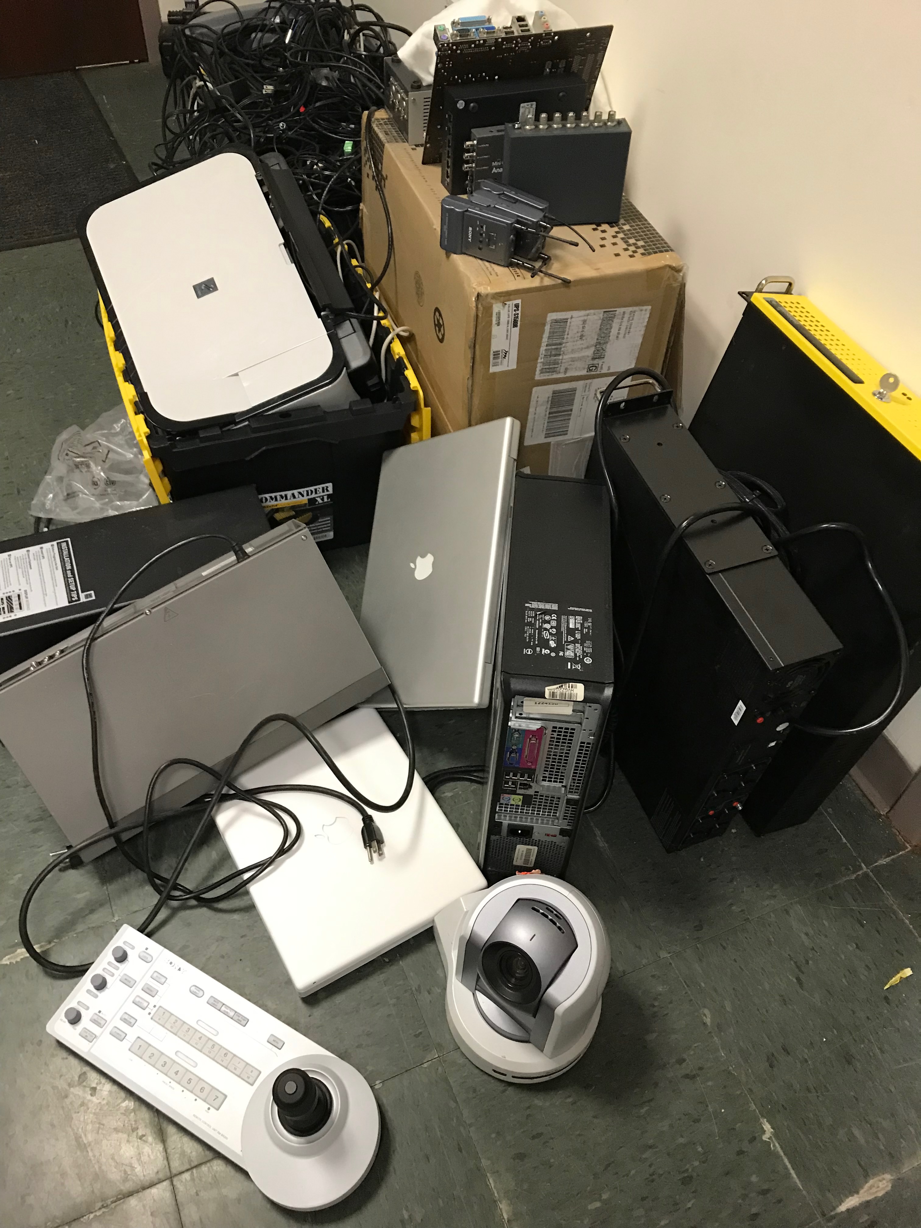 I run an access television station, and electronic waste piles up over several years time. We had old cabling, monitors, printers, cameras, servers, switchers and mixers that had outlived their useful life by as much as ten years