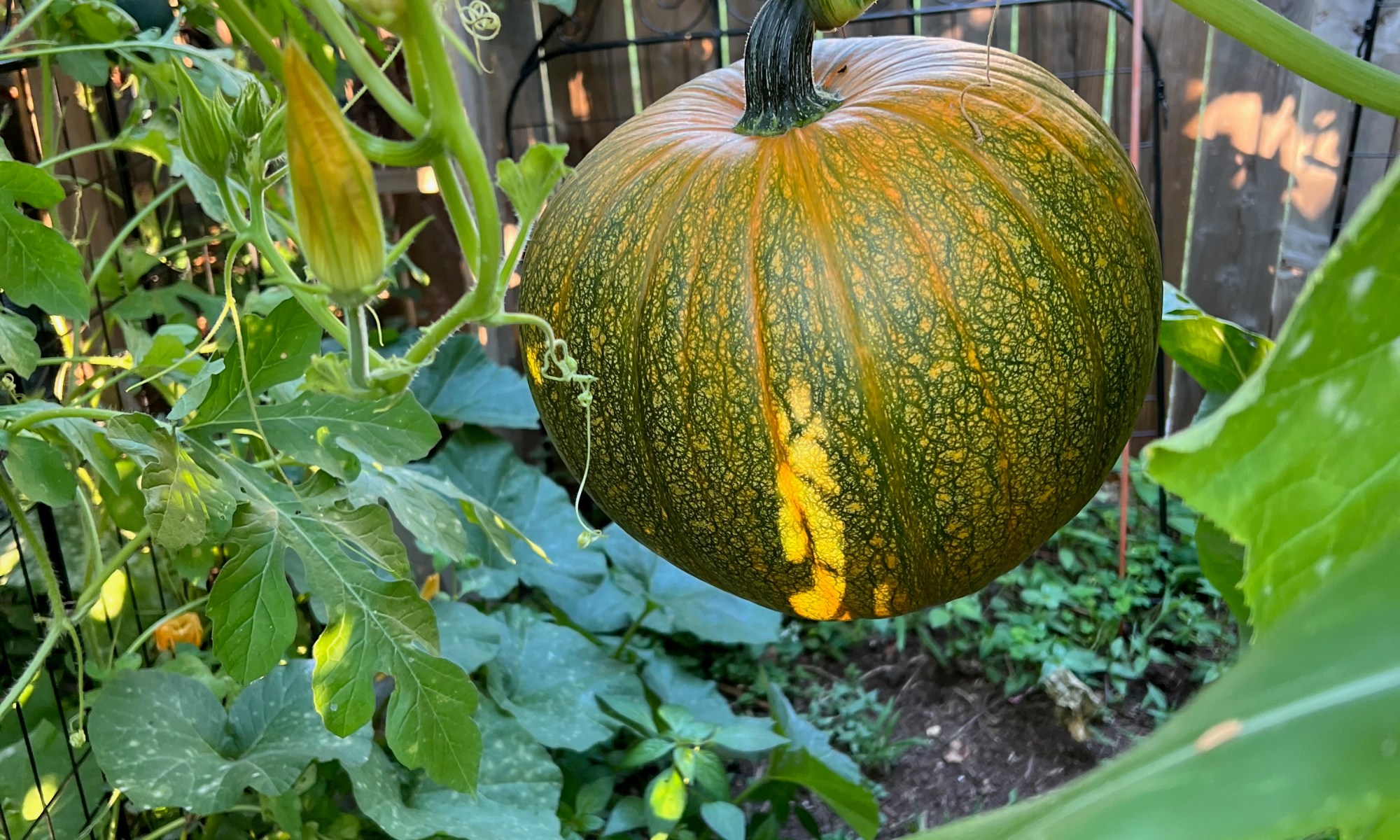 The last pumpkin from the garden has been baked, skinned, and is awaiting the food processor to be pureed. Then into a batter, for a hopefully not bitter batter with a bit of butter. Mixed, put in the oven, I hope to transform that final pumpkin into a pleasant pumpkin bread as its final foray.